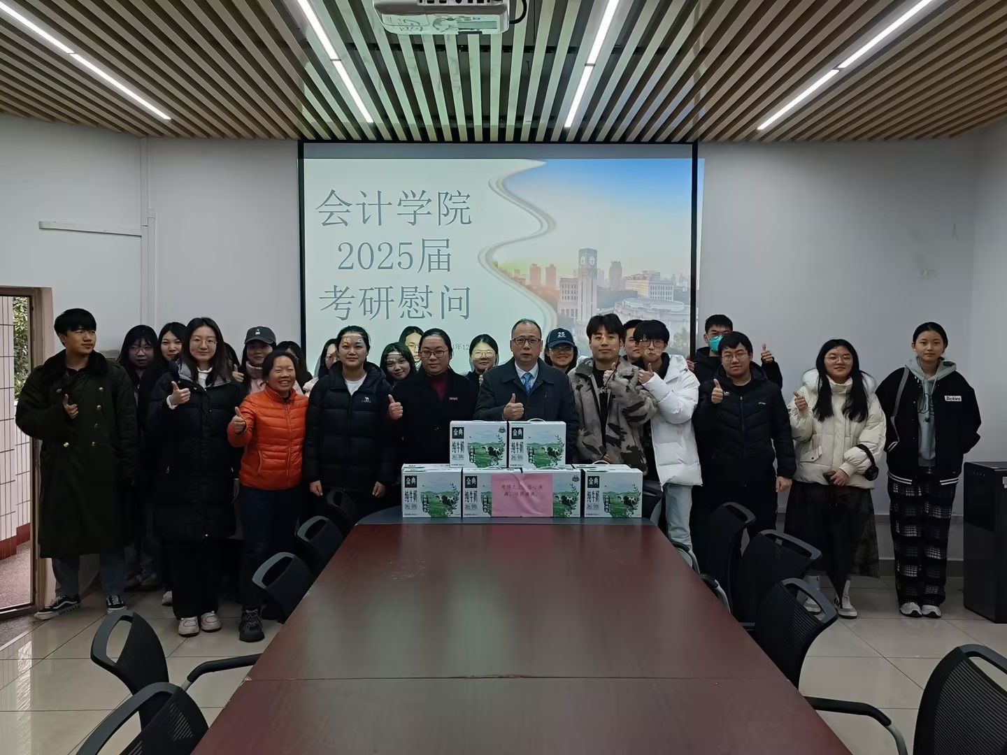 最后,学院领导和老师们为考研学子们送上了慰问品,祝愿同学们一战成硕,金榜题名。