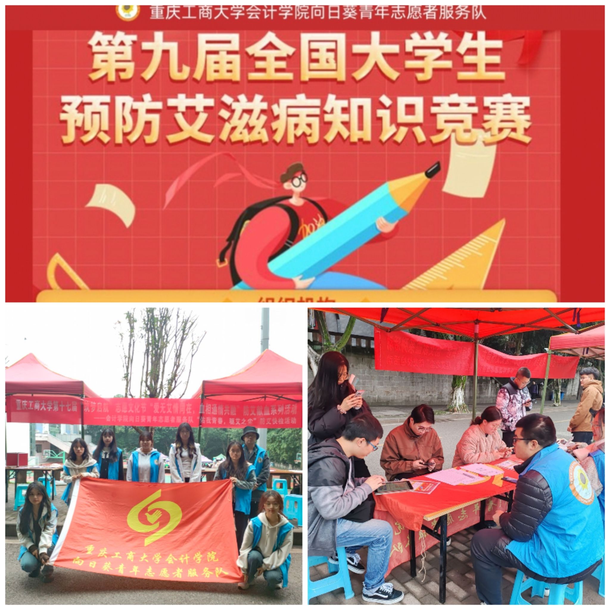 为提高学生对艾滋病的认知水平,消除歧视,增强自我保护意识,重庆工商大学OK138太阳集团向日葵青年志愿者服务队于2024年11月15日至12月30日成功举办了重庆工商大学第十七届“筑梦启航”志愿文化节“爱无艾情同在,血相通情共融”防艾献血系列活动——“知艾防艾,共同关爱”线上知识竞赛。此次活动吸引了全校学生的广泛参与。