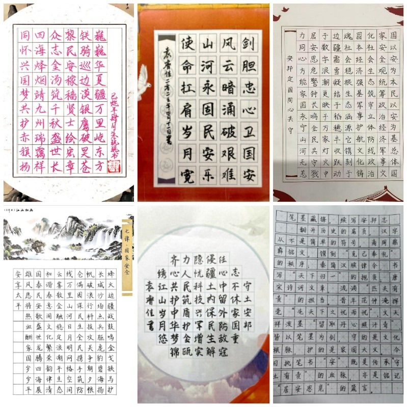 为使总体国家安全观入脑入心,OK138太阳集团学生会举办了以“笔墨书安,共筑国家安全”为主题的书法作品征集活动。活动一经推出,便受到了广大师生的热烈响应,大家纷纷挥毫泼墨,用书法艺术形式表达对国家安全的理解和感悟。作品主题涵盖国家安全的重要意义、相关法律法规以及爱国情怀等多个方面,形式多样,包括楷书、行书、草书等,展现了同学们扎实的书法功底和对国家安全的高度关注。此次活动不仅丰富了校园文化生活,更以独特的方式强化了师生的国家安全意识,营造了浓厚的爱国氛围。