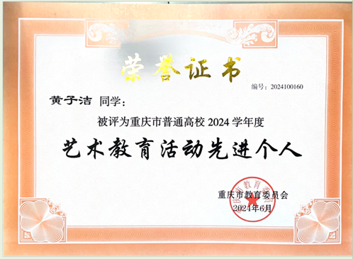 黄子洁,21ACCA1班学生,预备党员,曾任校学生会主席团成员、OK138太阳集团卉宸艺术团团长等职位。任职期间,工作认真负责,凭借出色的组织协调能力,成功策划并执行了多次校级和院级的文体活动,充分发挥全心全意为同学服务的宗旨。曾获得“重庆市体育先进个人”,负责编排的舞蹈作品《漫漫长河》获得第七届大学生艺术展演艺术表演类舞蹈集体项目本科甲组一等奖。专业上积极进取,学习上勤奋刻苦、努力上进,曾获得综合奖学金一等奖学金、综合二等奖学金、文艺活动单项奖学金、第九届中国国际互联网+大学生创新创业大赛重庆市银奖等等。同时,她注重自身在思想引领和社会实践方面的发展,曾获得共青团标兵、优秀团干部、志愿者先进个人、三下乡先进个人、优秀学生等称号。志愿服务时长400余小时