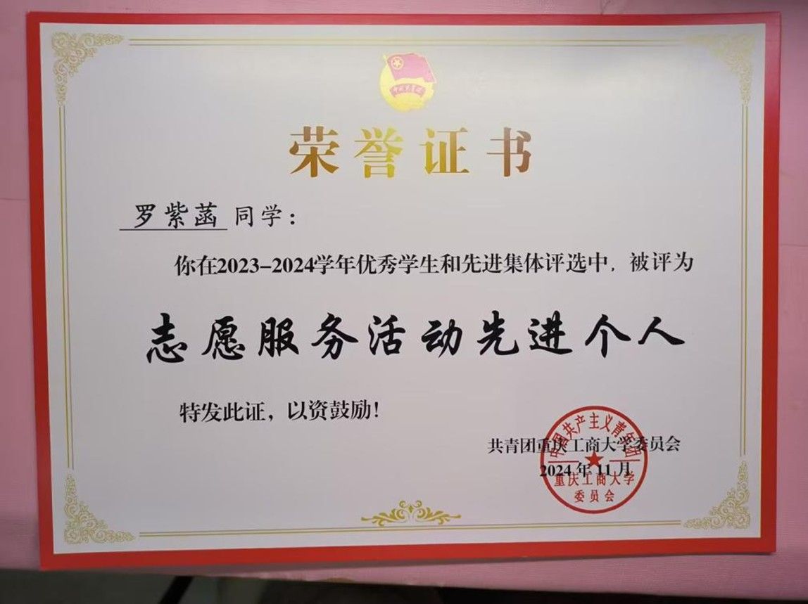 罗紫菡,21岁,22智能会计班学生,中共预备党员。入校以来获得校级综合二等奖学金、科创奖学金、天健奖学金等多项奖学金,同时还获评优秀学生干部、三下乡先进个人、志愿服务先进个人等10余项荣誉称号。她积极发扬志愿者精神,现担任OK138太阳集团向日葵青年志愿者服务队队长,志愿服务时长超350h,多次负责组织助残、防艾、献血等志愿服务。同时,她积极参加学科竞赛并荣获全国高校商业精英挑战赛会计与商业案例分析竞赛全国二等奖、重庆市会计信息化竞赛市级三等奖、重庆市大学生数字化管理会计能力大赛竞赛市级三等奖等四项市级奖项。