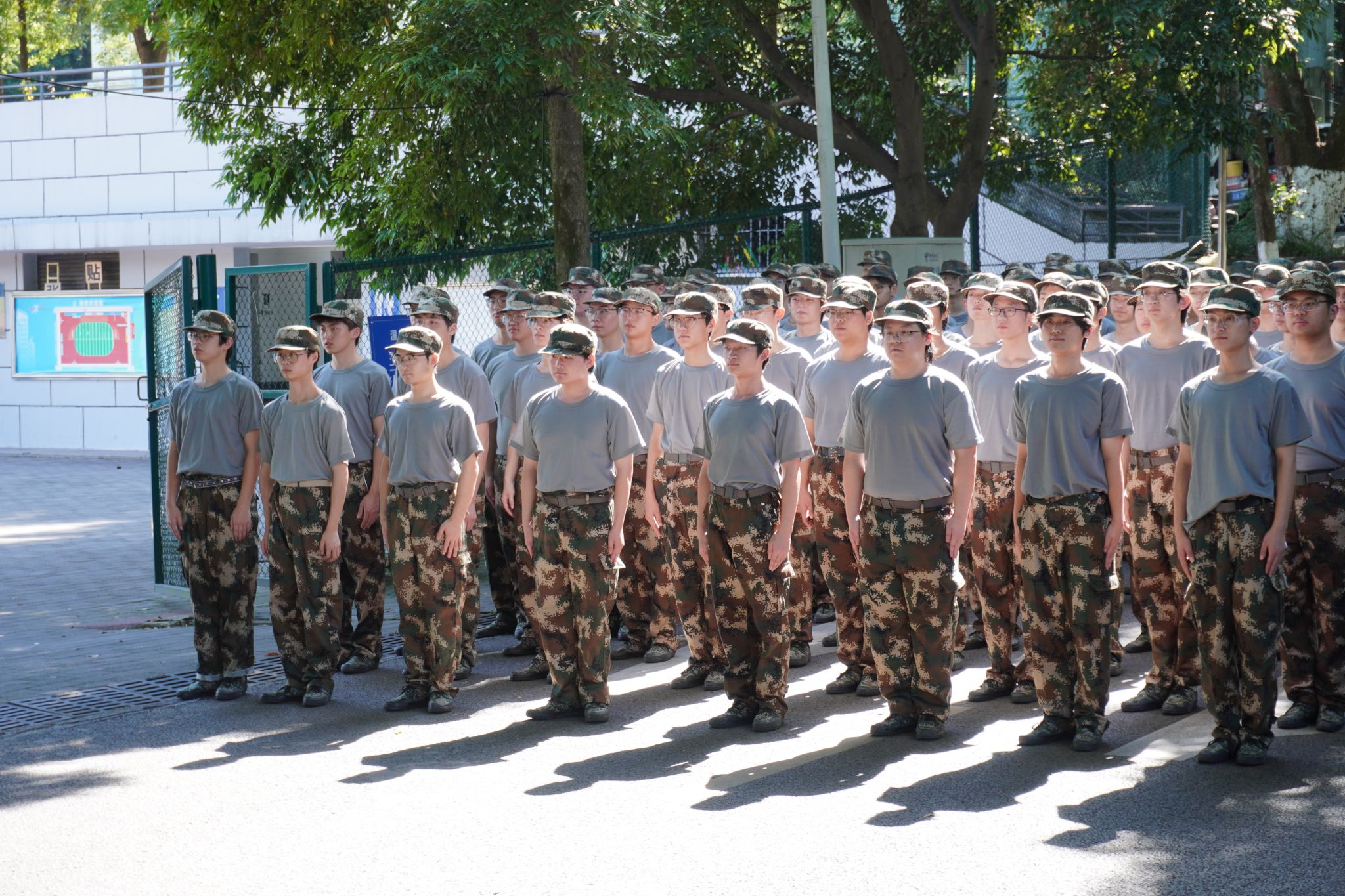 迷彩在操场上屹立,