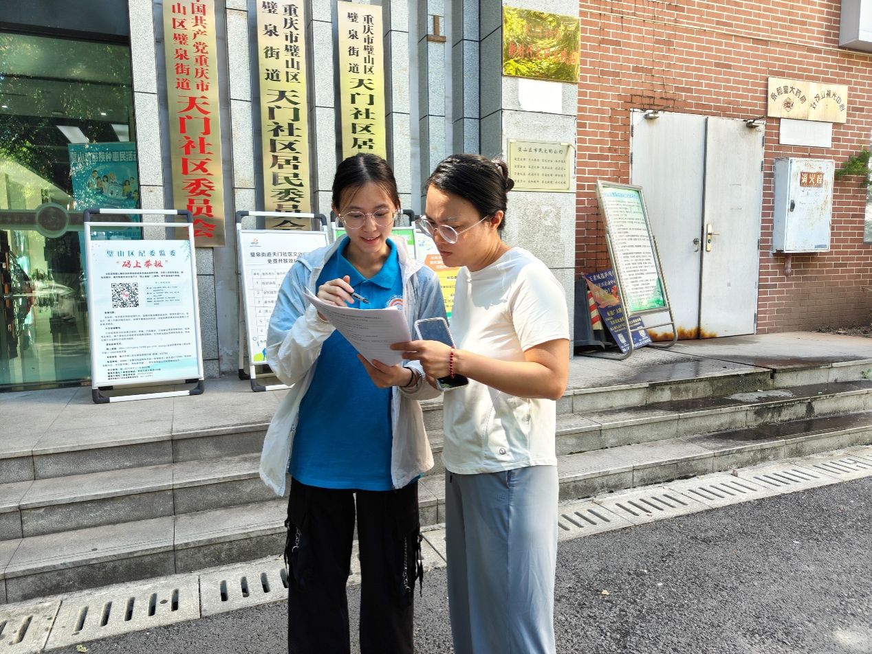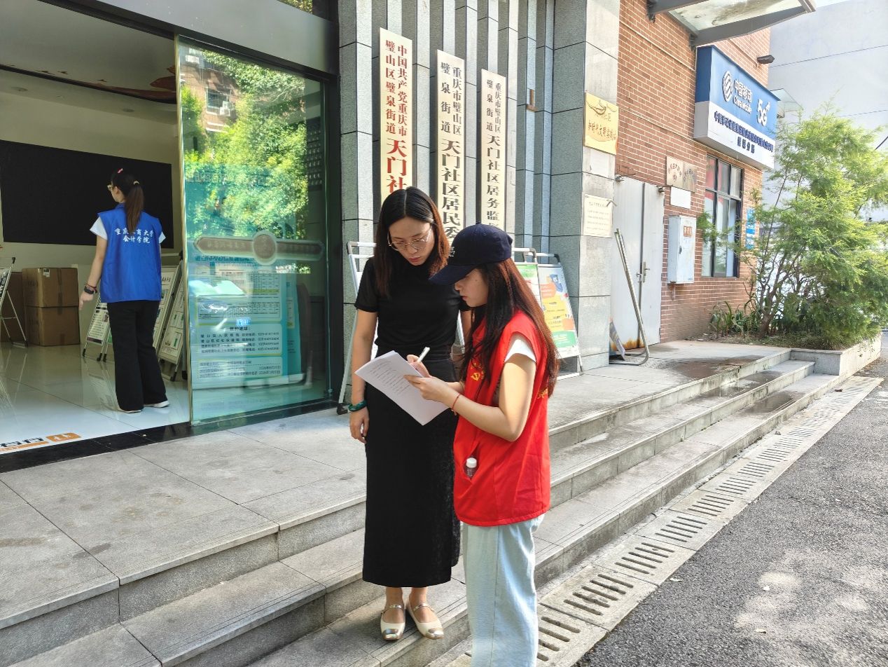 在调研过程中,队员们采取街头随机访问与定点设摊相结合的方式展开调查。“您好,我们是重庆工商大学的学生,正在进行林地资源利用情况的问卷调查,能请您帮忙填写一下吗?”队员们礼貌地向居民说明来意,并耐心解释问卷内容。大多数居民积极配合,认真填写问卷内容。