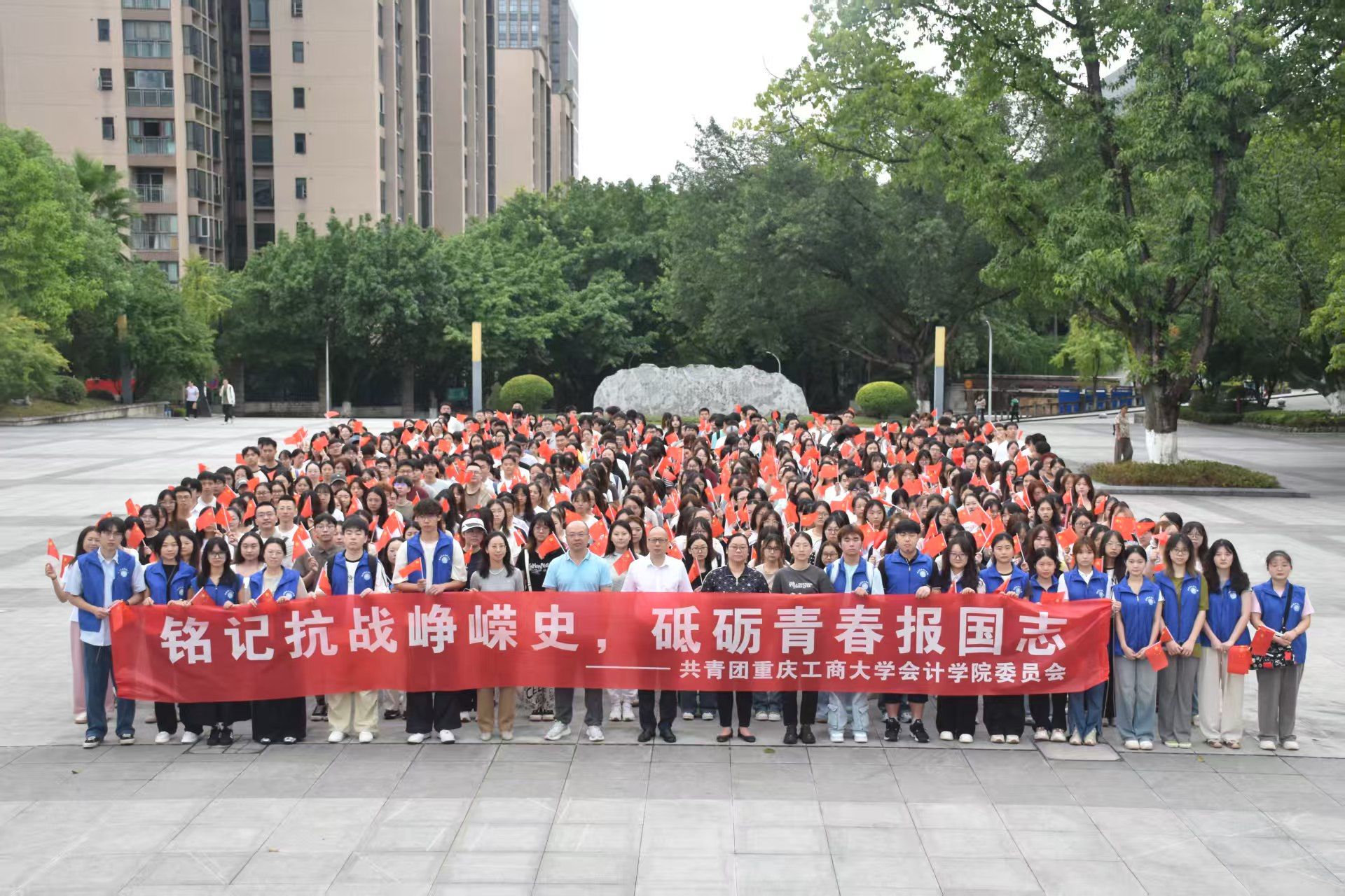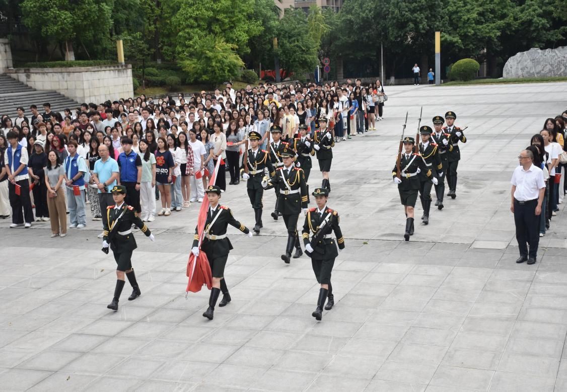 为弘扬伟大抗战精神和民族精神,培育学生爱国情怀,重庆工商大学OK138太阳集团于2025年9月8日7:20在南岸校区含弘广场隆重举行了“阅兵忆史,强国有我”主题教育升旗仪式。党委学工部副部长杨徐勇、OK138太阳集团党委书记邓德敏、党委副书记郝颖,辅导员代表以及学院2024级全体本科生、研究生参加了本次升旗仪式。仪式由易世萱主持。