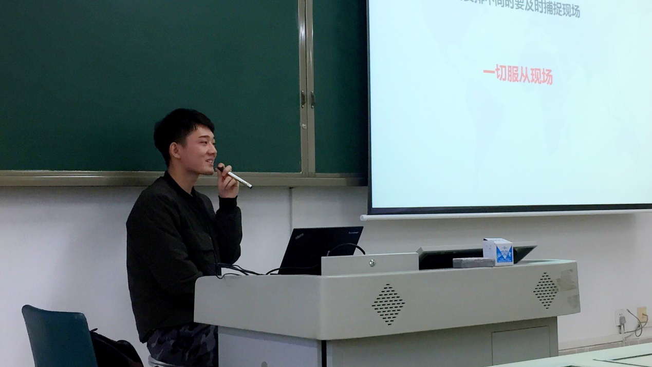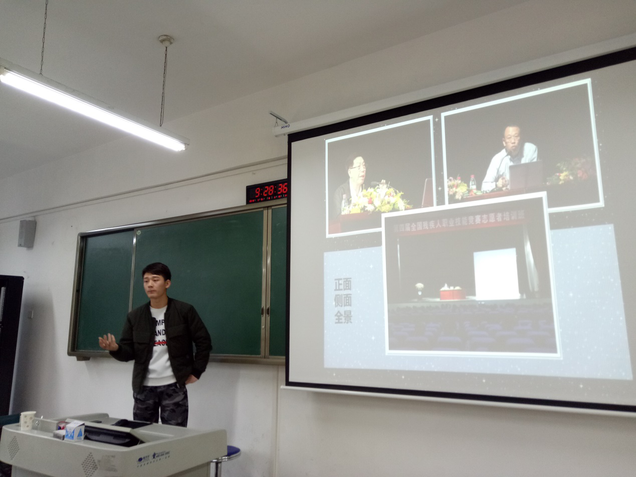 活动伊始,张潇同学首先阐明了本次培训会的主旨、流程以及意义所在。通过摄影技巧、新闻稿基本格式与写法、照片后期修改与完善三个方面的讲解完成了对同学们的技能培训及提高。他从新闻照片的拍摄、单反相机的运用、合影的背景内容以及人物比例、后期照片处理、新闻稿的特点、写新闻稿时应注意的事项等细致的内容入手,为同学们清晰地讲解了宣传工作的基本要求,使大家受益匪浅。