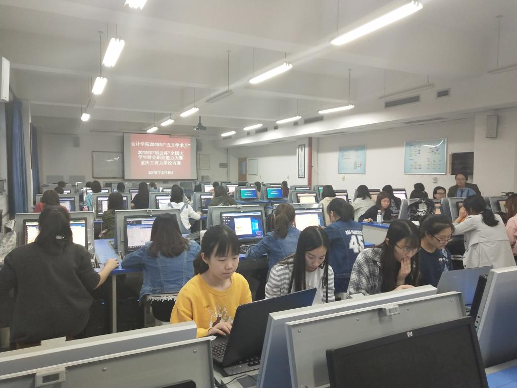 会计学院于2018年5月9日晚、5月10日晚19点到22点, 在南岸校区启智楼808教室顺利举办了2018年“五月学术月”“科云杯”全国大学生财会职业能力大赛校内选拨赛。