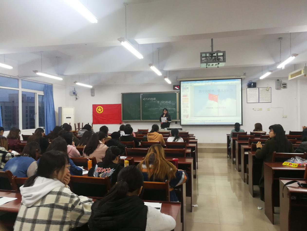 为深入学习宣传贯彻党的十九大精神和习近平新时代中国特色社会主义思想、党的十九大精神,激发全校团员青年立足新时代、学习新思想、砥砺新作为的热情,围绕上级团组织和学校中心工作,我们响应OK138太阳集团分团委的号召,于2018年11月15日在博志楼07605召开了本次主题为“时代的楷模,学习的榜样——新时代榜样学习”主题团日活动,以宣扬新时代榜样为核心点,向同学们介绍新时代中国的民魂-榜样精神所在,并邀请同学分享交流属于自己心中的榜样,因此达到全员互动的氛围,以及带动全员学习的目的。以优秀团员的榜样为重点,讲解了如何扎实推进班级建设,成为一名优秀的学生会部长。优秀学生干部代表细致讲解,强调作为学生干部要配合班主任加强班级建设,发挥学生干部的核心作用,各负其责,各尽其能,使学生会工作有条不紊的进行。