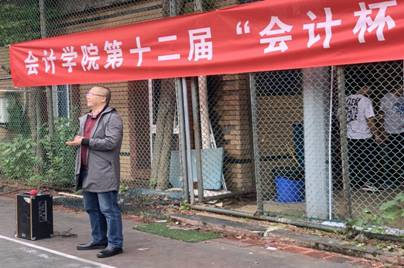 彭文涛老师致开幕词。第一、本着“友谊第一、比赛第二”,确保安全的前提下,希望同学们能够赛出风格,赛出水平,取得优异的成绩;第二、借着本次“会计杯”篮球赛,进一步弘扬体育精神,希望更多的学生参与其中,促使更多同学“走出寝室、走向操场”,加强体育锻炼;第三、尊重裁判,尊重对手。