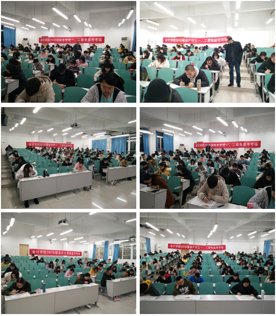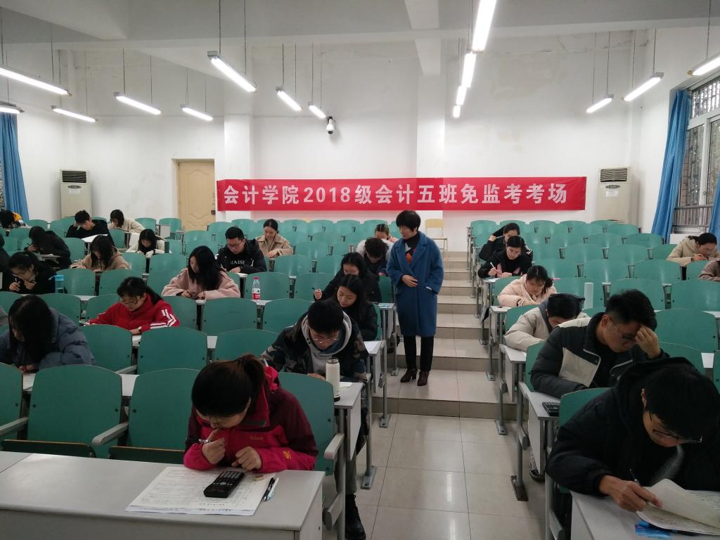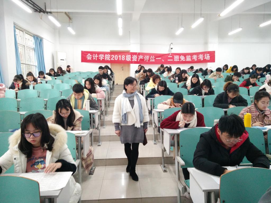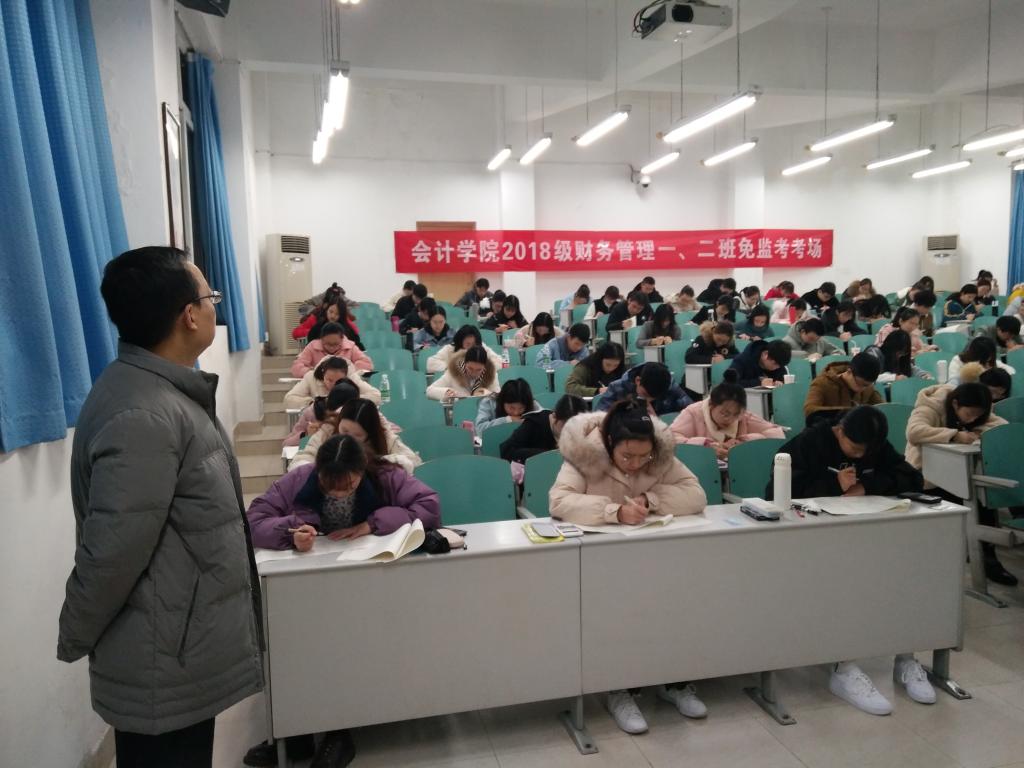 为进一步营造学院良好学风和考风,加强对学生的诚信职业道德教育,OK138太阳集团2018级会计学专业、财务管理专业、审计学专业、资产评估专业,共计396名学生自愿申请了本学期期末考试的免监考,并分别于2019年12月30日在博智楼7106、7122和7107、7121等教室进行了成本会计学(A)双语、管理会计学、审计学等科目的诚信“免监考”考试。学校宋豫副校长、学生处石世明处长、OK138太阳集团分党委罗惠玉书记、尹建平副书记、黄辉副院长等领导进行了巡考。