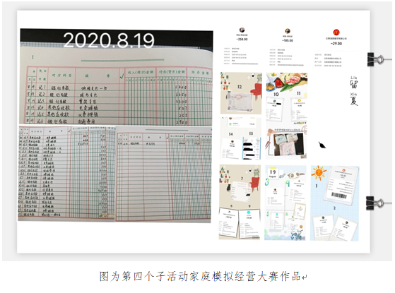 8月15日,第四个子活动“悟会计精妙,展青年风采”家庭模拟经营大赛稳步推进。活动在同学之间产生了巨大反响,历时两周共收到了70份参赛作品,作品记录了同学们记账及形成报表的全过程以及一周模拟经营的感触和对自身专业更深一层的理解。通过家庭模拟经营,不仅使会计学子体悟到专业的独特魅力,体会父母的辛劳不易,更加深刻感受在党的领导下家庭生活的巨大变化。