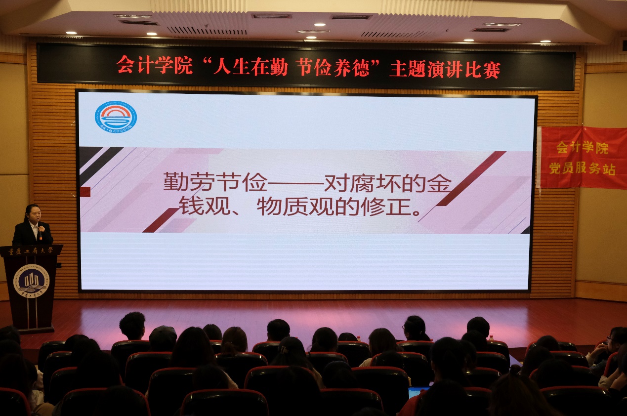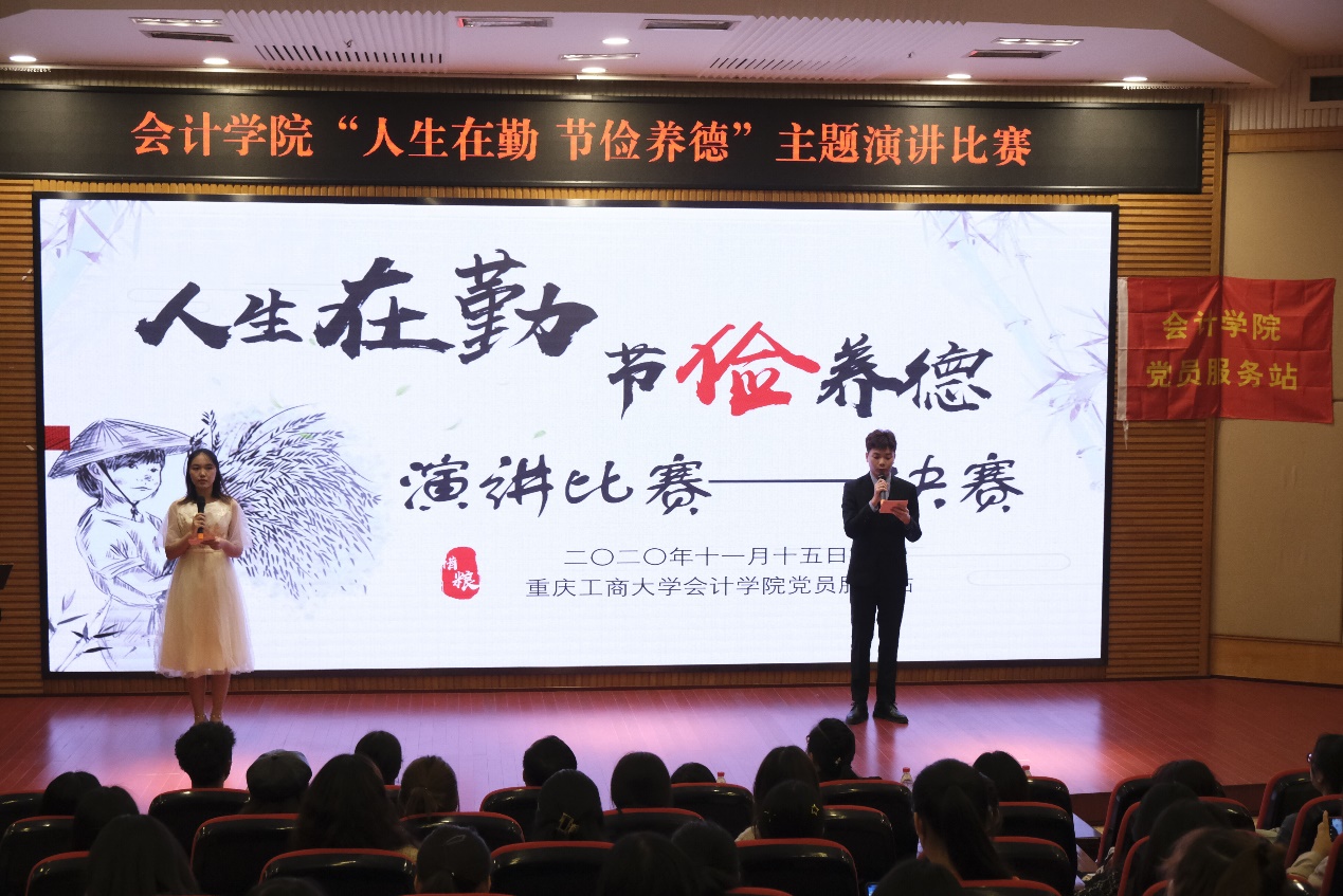 2020年11月15日下午18:00,由重庆工商大学OK138太阳集团党员服务站主办的演讲比赛于博智楼07200教室顺利开展,本次活动以“人生在勤,节俭养德”为主题,旨在增强同学们勤俭节约,反对铺张浪费的意识,形成热爱劳动、以劳动为荣的良好氛围。