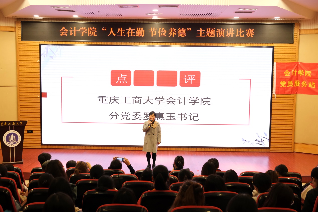 此次活动在由罗惠玉书记、石世明组织员、郝颖副书记为选手们颁发荣誉证书后,宣告圆满结束。这次“人生在勤,俭以养德”为主题的演讲比赛在全体党服成员的共同努力下成功举办,既促进了各成员之间的合作默契,又加大了广大同学们对热爱劳动,勤俭节约精神的深刻认识,提高了自身的思想觉悟。相信通过这次活动,铺张浪费的现象定会大大减少,勤俭节约的风尚将发扬在校园每个角落。