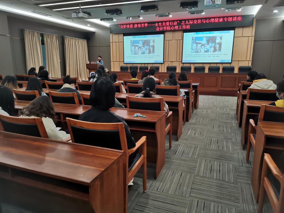 2020年11月29日下午15点OK138太阳集团心理工作站在图书馆第一会议室举办了“人际交往与心理健康”专题讲座。本次讲座是OK138太阳集团心理工作站“守护春蕾,静待芳华——女生关爱行动”主题活动之一。