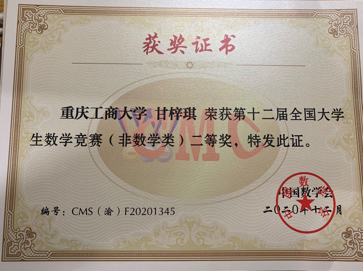 入校以来,累计获得奖学金和荣誉等39项,其中包括国家奖学金、综合一等奖学金、高教社杯全国大学生数学建模竞赛国家二等奖,2021年第六届科云杯全国大学生职业能力大赛一等奖等,并发表省部级论文1篇,所写社会实践报告在国家级媒体中青校园刊登。
