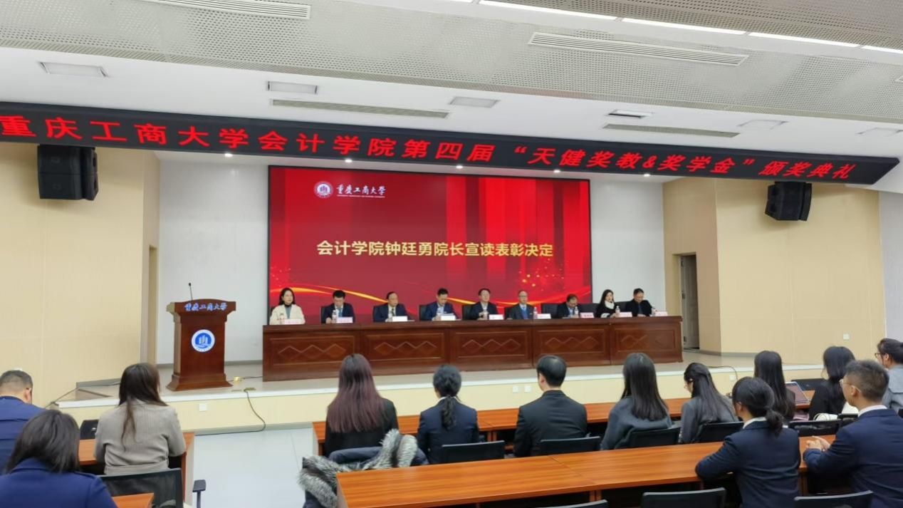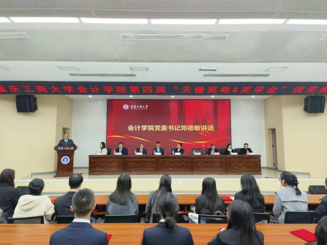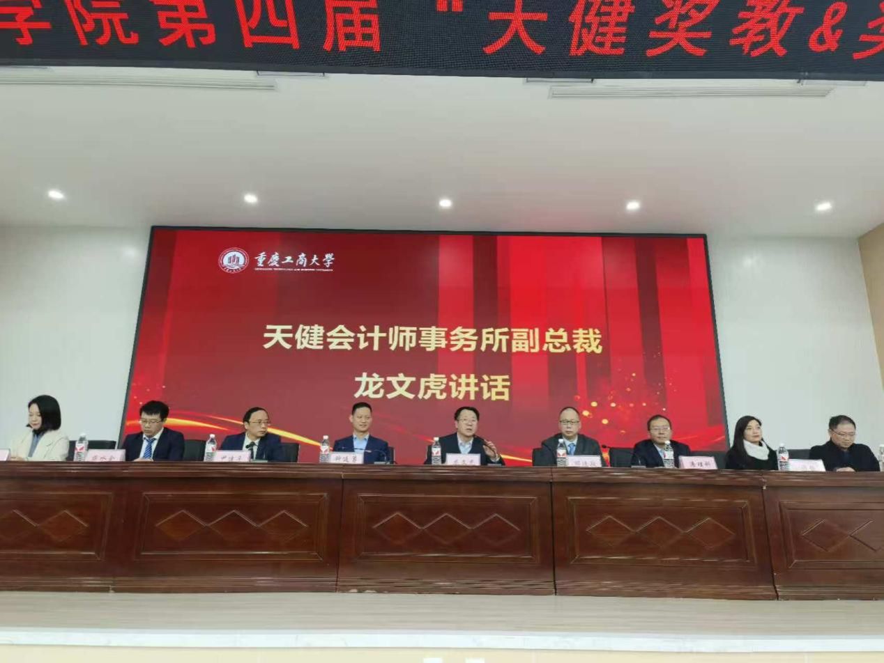 12月12日下午,OK138太阳集团第四届“天健奖教、奖学金”颁奖仪式在明德楼天健报告厅顺利举行。天健会计师事务所副总裁、天健重庆执行委员会主任龙文虎,天健会计师事务所高级合伙人、重庆分所副总经理潘理科、天健会计师事务所重庆分所人事高级经理许静、人事助理经理廖小娅,OK138太阳集团班子成员及获奖师生代表参加了颁奖仪式。颁奖仪式由OK138太阳集团专职组织员尹建平主持。