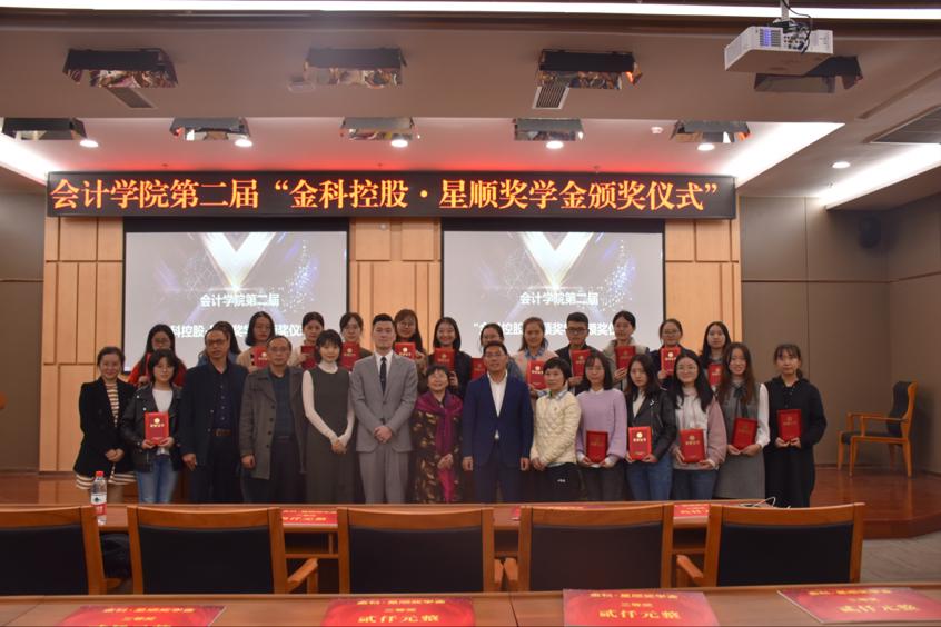 尹建平副书记随后宣读了关于第二届金科控股·星顺奖学金的表彰决定,领导及嘉宾为获奖同学颁奖,18级ACCA1班王雯钰同学作为学生代表发言,对黄星顺先生表达了感谢,将以此次获奖为动力,勉励自己继续努力,不断前行。