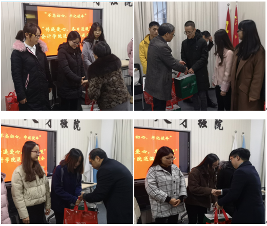 座谈会后,学院领导为学生代表分别发放了慰问品。