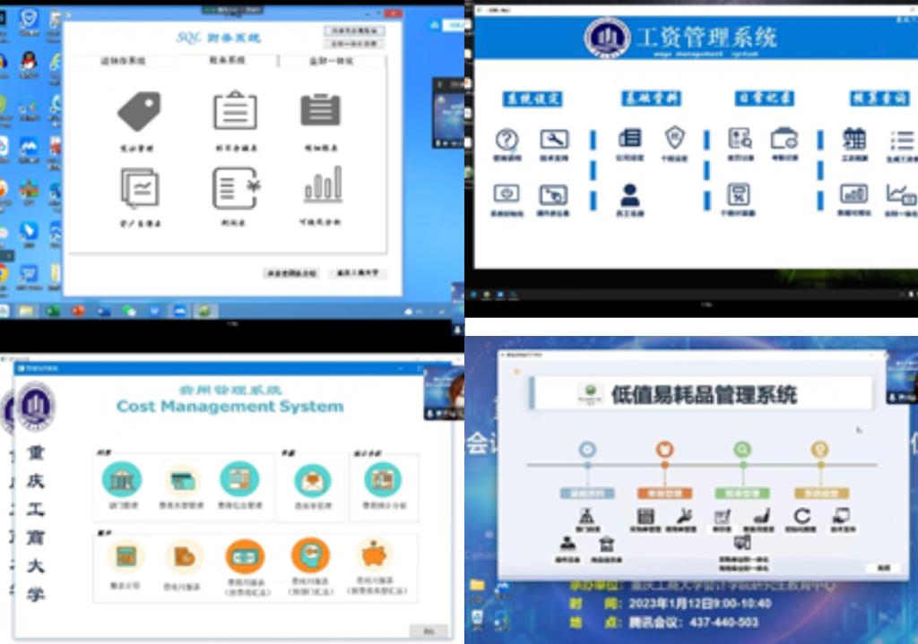 在比赛环节,5支参赛队伍分别进行了作品展示和课程汇报。5支队伍的作品分别为工资管理信息系统、费用管理信息系统、低值易耗品管理信息系统、融资管理信息系统4个A档难度作品和业财一体化系统B档难度作品。