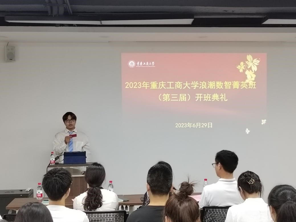 2023年6月29日下午,重庆工商大学第三届浪潮数智菁英班开班典礼在浪潮集团会议室顺利举行。浪潮国际重庆区副总经理吴严、渠道总监冉红利、PMO办公室陈然和行政办公室冯双应邀参加,OK138太阳集团副院长钟廷勇、MPAcc教育中心负责人陈欢、教务秘书赵亚、专任教师张婉君出席开班仪式,典礼由陈欢主持。