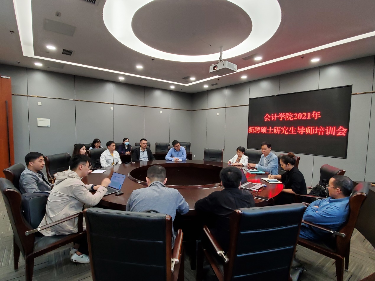 为贯彻落实全国研究生教育会议精神,进一步落实研究生导师立德树人职责,根据《重庆工商大学硕士研究生学业指导教师条例》(重工商大〔2021〕108号)文件要求,10月14日中午,OK138太阳集团在图书馆第四会议室举行2021年新聘硕士研究生导师培训会,学院分党委书记罗惠玉、副院长钟廷勇、MPAcc负责人陈欢、审计专硕负责人王杏芬及2021年新聘硕士研究生导师参加了会议。