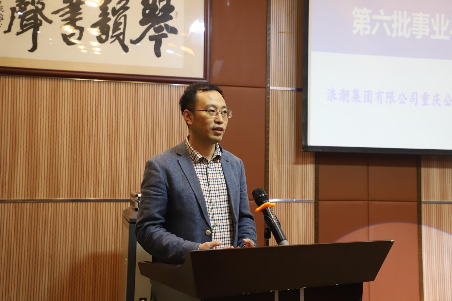 最后,第六届事业导师代表浪潮集团有限公司重庆公司副总经理王宏波先生发言。王宏波先生畅谈了担任事业导师的感想,并表示一定会耐心指导学生、传授经验,履行好事业导师的职责。