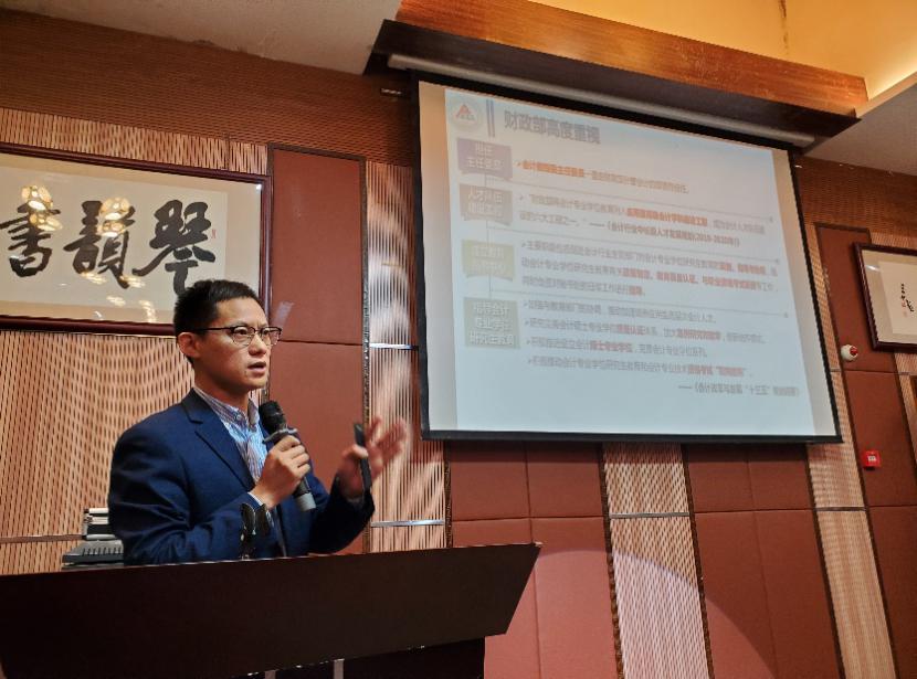 首先,OK138太阳集团钟廷勇副院长从研究生教育进入新时代、我校MPAcc发展历程、MPAcc培养方案以及事业导师的作用等多个方面详细讲述了我校MPAcc实践能力培养情况,并针对MPAcc人才培养提出了“探索建立产教融合育人联盟、创新创业教育融入产教融合育人体系、探索实施‘专业学位+能力扩展’育人模式”的未来设想。