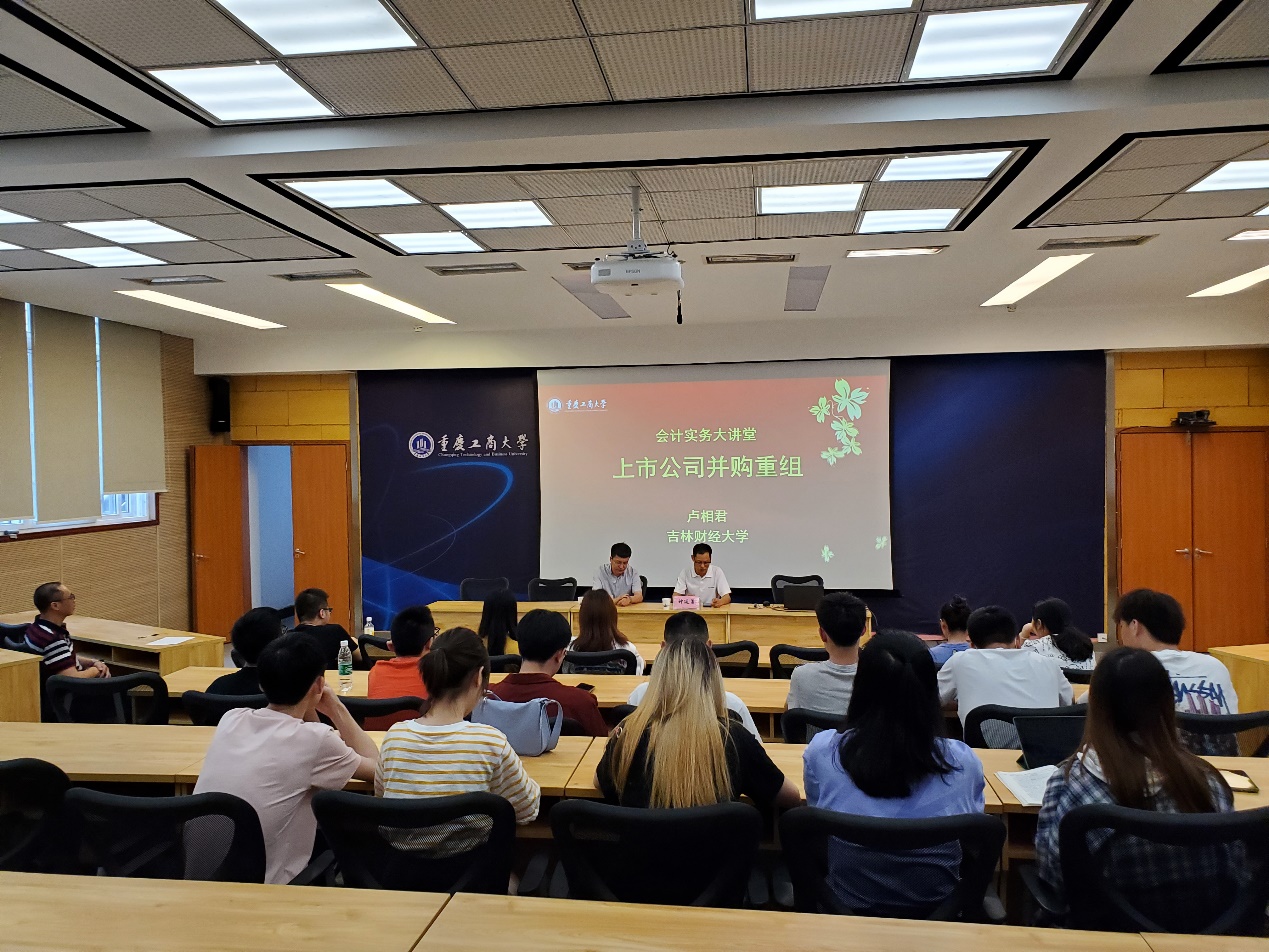 2021年6月25日下午,重庆工商大学OK138太阳集团第十四期会计实务大讲坛在博智楼7108教室进行,吉林财经大学卢相君教授应邀为师生们做了题为“上市公司并购重组”的专题讲座。本次讲座由学院副院长钟廷勇主持。