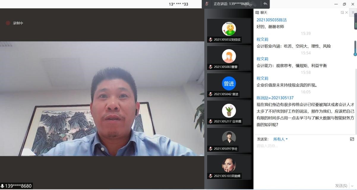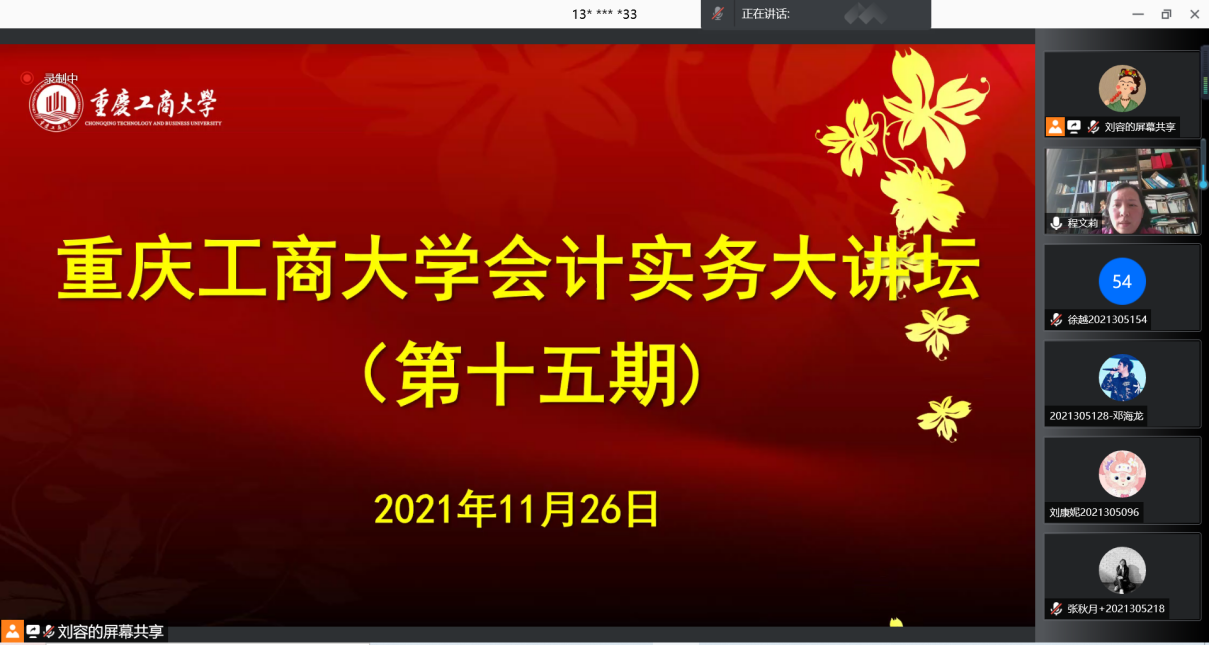 11月26号下午,我院第十五期会计实务大讲坛通过线上腾讯会议顺利举行。中国诚通生态有限公司企业总会计师任小平教授应邀为同学们做了题为“‘知’与‘行’下的财务实践”专题讲座。讲座由OK138太阳集团研究生教指委主任程文莉教授主持。