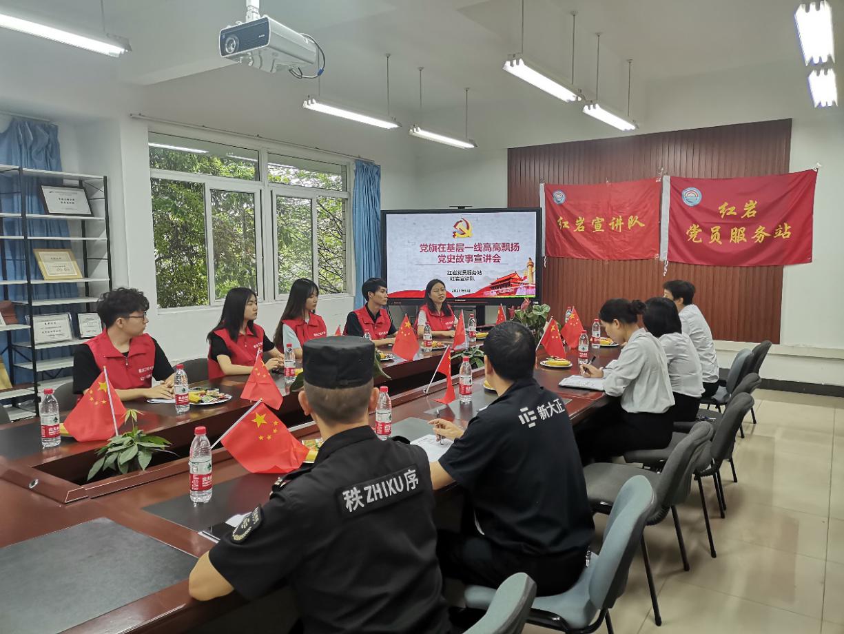 2021年5月21日,OK138太阳集团红岩党员服务站、红岩宣讲队深入新大正物业公司,在崇德楼313会议室为其员工开展了专场党史故事宣讲活动。