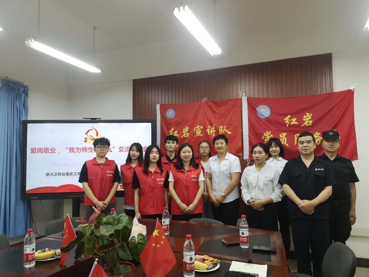 活动伊始,王婷老师向新大正物业的教职工代表们介绍了红岩党员服务站、红岩宣讲队以及“党旗在基层一线高高飘扬”活动相关情况,引导师生从党史故事宣讲中汲取前行的精神力量,做到学史明理、学史增信、学史崇德、学史力行。随后,由的三位红岩宣讲队代表为大家带来了非常精彩的党史故事。他们分别以赵世炎——“世有炎凉,仍乐此生”、黄继光——“穿越时空的家书”、毛泽东——“弥天大勇,深入虎穴”三则故事铺开了一幅“不因丧命而胆怯,惟愿吾身殉国难”的革命时期的壮阔画卷。现场人员无不被鲜活的故事讲述深深打动。最后,新大正物业邓娅莉经理为此次活动做了总结。她说物业服务管理水平直接影响到学生的生活环境、关系学生的幸福指数。因此物业从业者也应该积极向英雄模范学习,传承红色基因,以高质量的服务做好公寓社区工作。