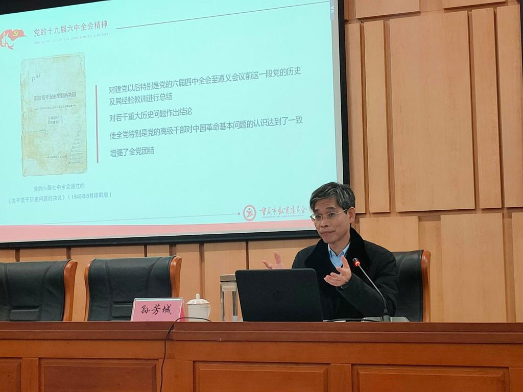 12月20日14:20—16:30,OK138太阳集团在图书馆第一会议室举办了党的十九届六中全会精神“进校园”宣讲会。校长孙芳城应邀出席并宣讲了党的十九届六中全会精神,OK138太阳集团党委书记罗惠玉,党委副书记、院长罗勇,党委副书记郝颖,以及OK138太阳集团学生党员出席参加,会议由OK138太阳集团党委书记罗惠玉主持。