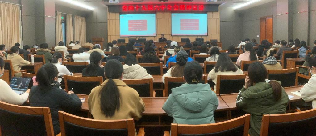 在两个多小时的宣讲会上,校长孙芳城对党的十九届六中全会精神进行了系统全面的宣讲,从深刻认识总结党的百年奋斗重大成就和历史经验的重大意义,深刻认识党的百年奋斗的初心使命和重大成就,深刻认识中国特色社会主义新时代的历史性成就和历史性变革,深刻认识党的百年奋斗的历史意义和历史经验,深刻认识以史为鉴、开创未来的重要要求以及从党的百年奋斗历程中汲取智慧力量等六个方面对全会精神进行了深入解读和诠释,孙校长强调,党的十九届六中全会全面总结了党的百年奋斗重大成就和历史经验问题,政策成效未来可期,要坚持以习近平新时代中国特色社会主义思想为指导,深刻理解“两个确立”的重大意义,增强“四个意识”,坚定“四个自信”,做到“两个维护”,从党的百年奋斗中汲取经验,以史为鉴,开创未来,为第二个百年奋斗目标奉献力量,此外孙校长还强调教育是未来的事业,要将十九届六中全会精神贯彻到教育工作当中,贯彻执行双减政策,坚持以人为本。