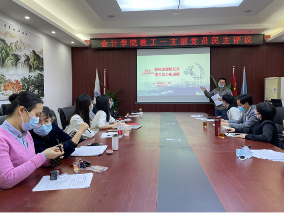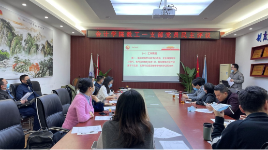 紧接着,蒋弘代表支部委员会对2021年度工作进行述职,总结了教工一支部一年来开展的各项工作以及取得的成效,同时也指出支部工作中存在的不足,深入剖析了问题产生的原因,提出了整改措施和未来工作思路,并请党员对支部工作进行评议。大家认真听取了蒋弘的支部工作报告,对支部的工作给予了充分肯定,同时也提出了一些有益的意见和积极的建议。