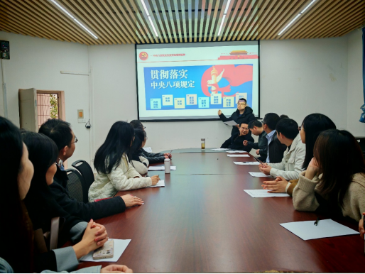 首先,蒋弘围绕“规定立标强根基,细则固本肃纲纪”这一主题,带领大家学习了“中央八项规定及其实施细则精神”。2012年12月4日,中共中央政治局召开会议,审议通过了《中央政治局关于改进工作作风、密切联系群众的八项规定》,简称中央八项规定。中央八项规定从改进调查研究、改进会风、改进文风、规范出访活动、改进警卫工作、改进新闻报道、严格文稿发表、厉行勤俭节约等8个方面,对党员加强作风建设立下规矩,旨在整治严重损害党和政府形象、破坏党群干群关系的形式主义、官僚主义、享乐主义和奢靡之风这“四风”问题。2017年10月27日,习近平总书记主持召开十九届中央政治局第一次会议,审议通过了《中共中央政治局贯彻落实中央八项规定的实施细则》,进一步规范、细化和完善八项规定内容,推动作风建设深化发展。2022年10月25日,习近平总书记主持召开二十届中央政治局第一次会议,审议通过了《中共中央政治局贯彻落实中央八项规定实施细则》,强调“必须始终把中央八项规定作为长期有效的铁规矩、硬杠杠,抓住‘关键少数’以上率下,持续深化纠治‘四风’,重点纠治形式主义、官僚主义,坚决破除特权思想和特权行为”。中央八项规定精神的实质是我党以刀刃向内的自我革命勇气,严守勤俭节约纪律,涤荡奢靡浪费积弊,锻造廉政铁壁防线,淬炼恪职务实本色,从作风建设破题,推动全面从严治党向纵深发展。学习过程中,蒋弘给大家讲述了多个违反中央八项规定精神的典型问题,以案示警。