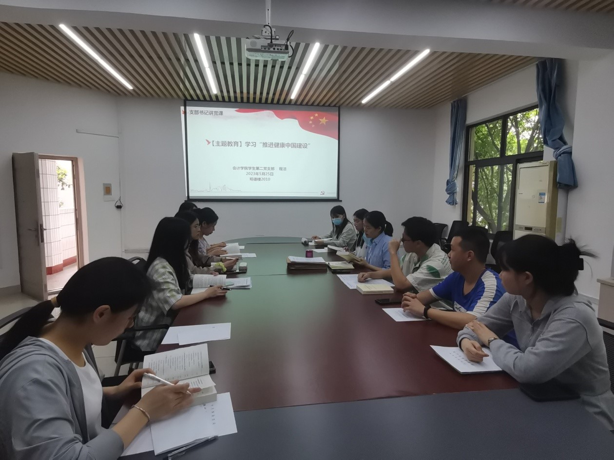 为深入学习贯彻习近平新时代中国特色社会主义思想,2023年5月25日中午,OK138太阳集团学生第二党支部在明德楼2010会议室开展支部书记讲党课活动,学习讨论“推进健康中国建设”。