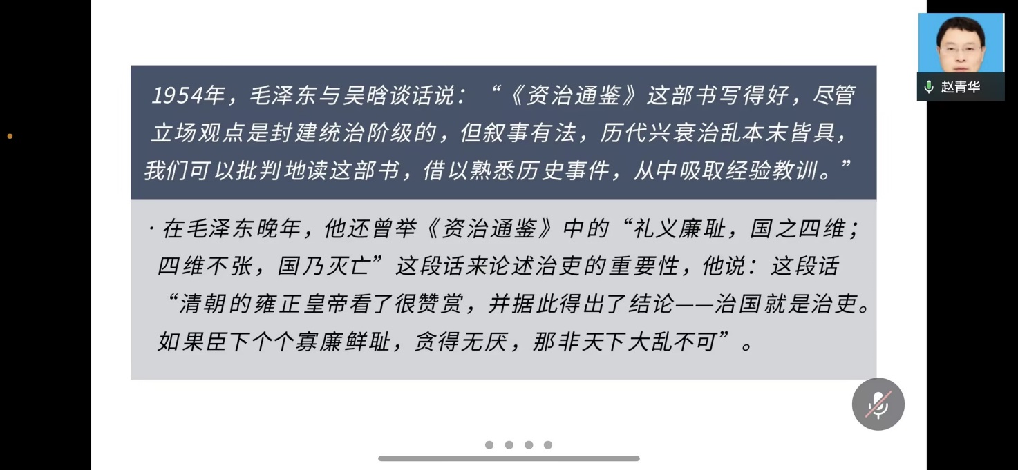 在之后的“好…好…学习”专栏,赵青华推荐了一本好书《毛泽东读批<资治通鉴>》。毛泽东同志对《资治通鉴》的研究,不仅历时甚久,而且具有很高的学术价值和实践意义。从中我们可以得到启示,即历史研究对于我们掌握历史经验、总结历史教训以及指导现实工作都具有重要的作用。