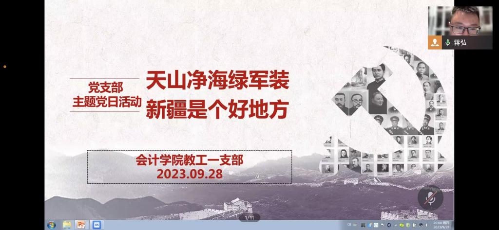 新疆是中国陆地面积最大的省级行政区,占我国陆地国土总面积的六分之一。一个安全稳定、欣欣向荣的新疆,既反映出我国经济社会发展的巨大成就,也体现出全国各族人民在党领导下的团结一心、众志成城。2023年9月28日,OK138太阳集团教工一支部以“天山净海绿军装,新疆是个好地方”为主题,学习了“习近平在听取新疆维吾尔自治区党委和政府、新疆生产建设兵团工作汇报时的重要讲话精神”和“习近平在首个全国生态日到来之际作出的重要指示精神”。本次活动由蒋弘主持,一支部全体党员参加。