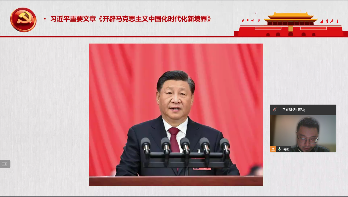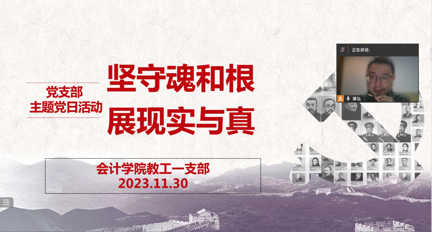 中国共产党人要坚守马克思主义这个魂脉和中华优秀传统文化这个根脉,为迎接中华民族伟大复兴和应对百年未有之大变局提供创新方案,展现出实践和真理的伟大力量。2023年11月30日,OK138太阳集团教工一支部以“坚守魂和根,展现实与真”为主题,开展了主题党日活动。活动由支部书记蒋弘主持并领学,支部全体党员参会,支部还特别邀请了入党积极分子宋昕倍博士观摩学习。