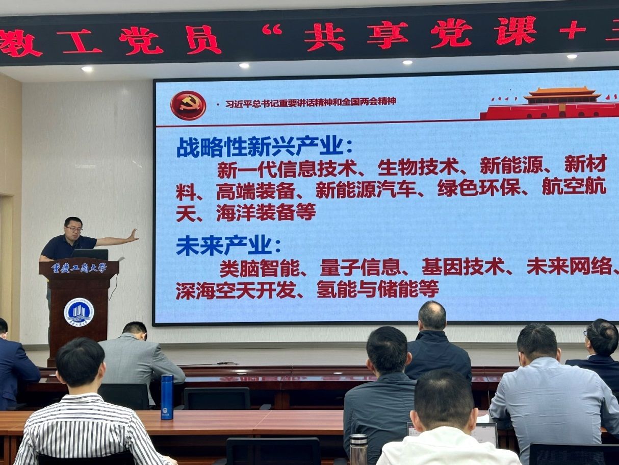 在活动第一个环节,由教工一支部书记蒋弘领学“习近平总书记重要讲话精神和全国两会精神”。在2024年3月召开的“两会”期间,习近平总书记参加了人大代表团会议、政协联组会等会议,并发表了重要讲话。蒋弘带领三个支部的党员学习了这些讲话的核心内容。