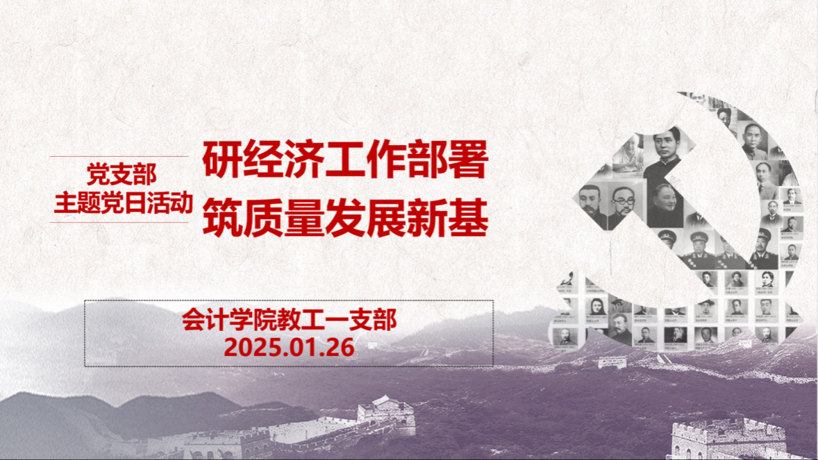 2025年1月26日下午,OK138太阳集团教工一支部召开题为“研经济工作部署,筑质量发展新基”的主题党日活动,活动由支部书记蒋弘主持。活动开始前,蒋弘向支部党员传达了巡察反馈意见、反馈会上宋书记讲话精神以及学院邓书记的表态讲话。